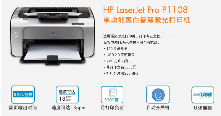 惠普(HP) 1108黑白激光打印機 A4打印 小型商用打印
