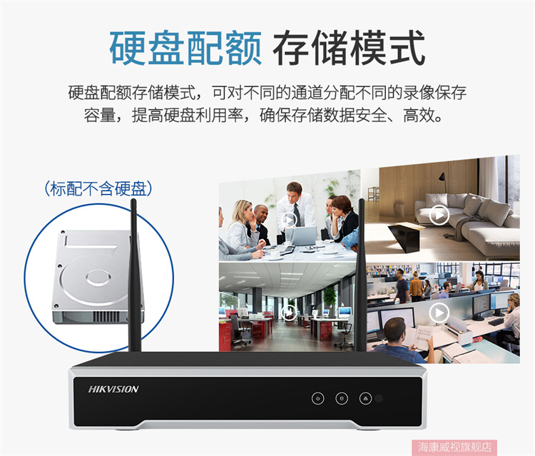 海康威視 DS-7804N-F1/W(4路/1盤位) ??低暉o線WIFI網(wǎng)絡(luò)硬盤錄像機(jī)NVR監(jiān)控主機(jī)連接??禑o線監(jiān)控?cái)z像頭