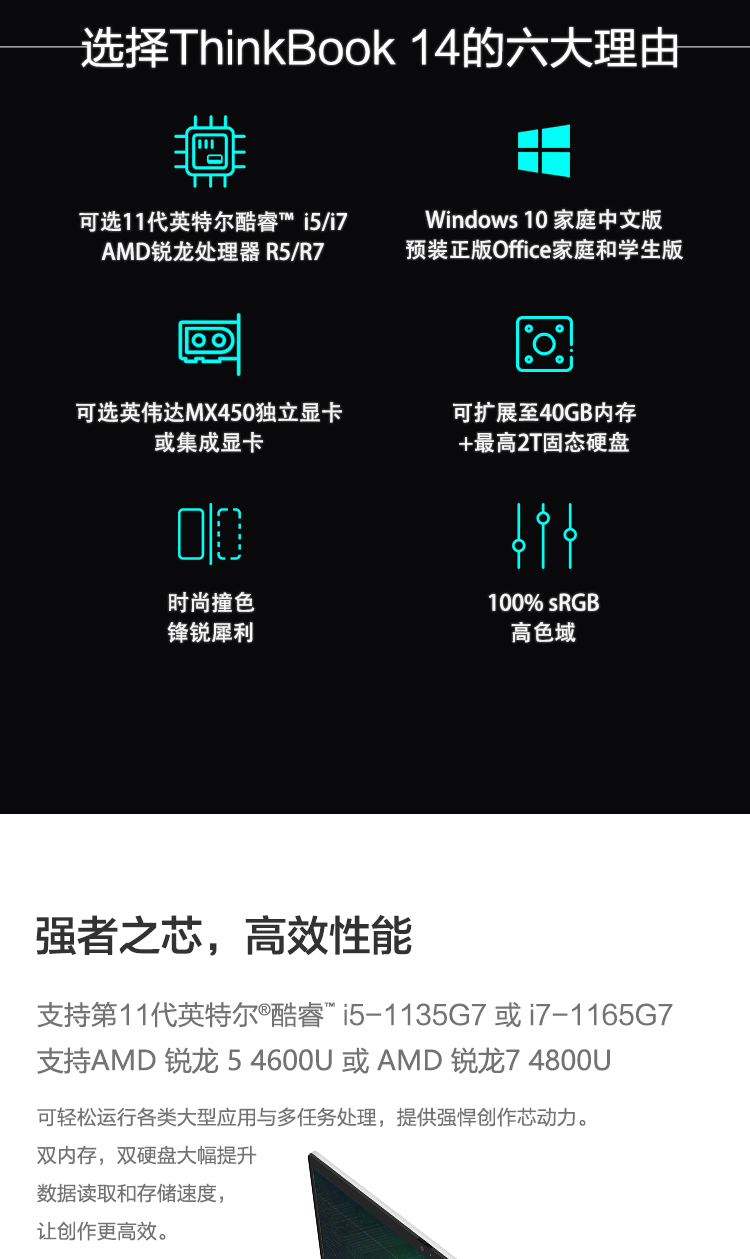聯(lián)想ThinkBook 14 2021款 14英寸輕薄筆記本電腦 【08CD】 11代酷睿i7-1165G7 獨(dú)顯 16G 512G 100%sRGB 高色域 標(biāo)配