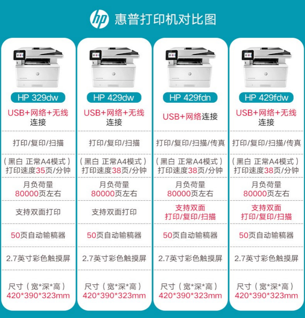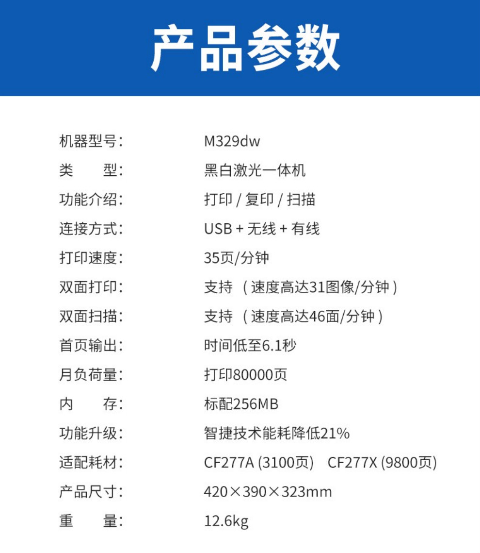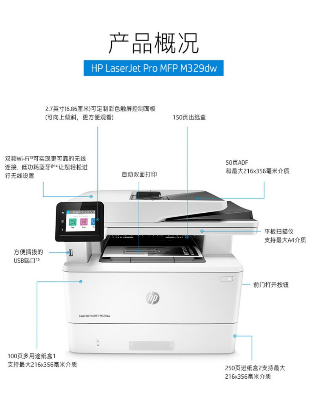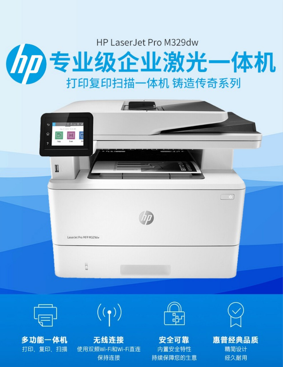 惠普(HP)黑白激光一體機(jī)M429dw/fdw 329dw打印機(jī)多功能自動(dòng)雙面復(fù)印掃描無(wú)線(xiàn) M429fdw【四合一+自動(dòng)雙面打印+無(wú)線(xiàn)連接】 官方標(biāo)配