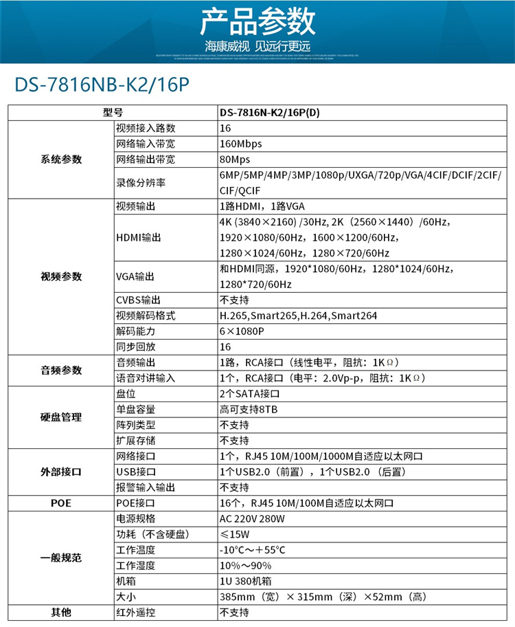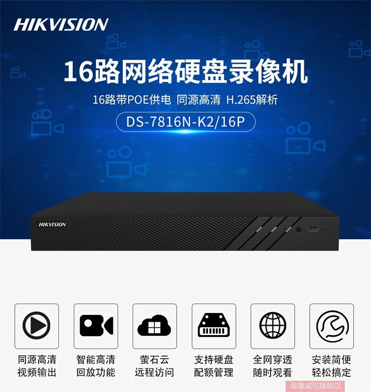??低?DS-7816N-K2/16P ??低暰W(wǎng)絡(luò)監(jiān)控硬盤(pán)錄像機(jī)16路帶POE 不帶硬盤(pán)