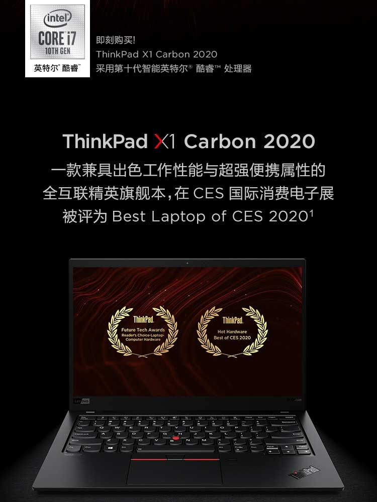 聯(lián)想ThinkPad X1 Carbon 2020英特爾酷睿i5 14英寸輕薄筆記本電腦 i5-10210U 8GB 512G(36CD) FHD 背光鍵盤 Win10 office
