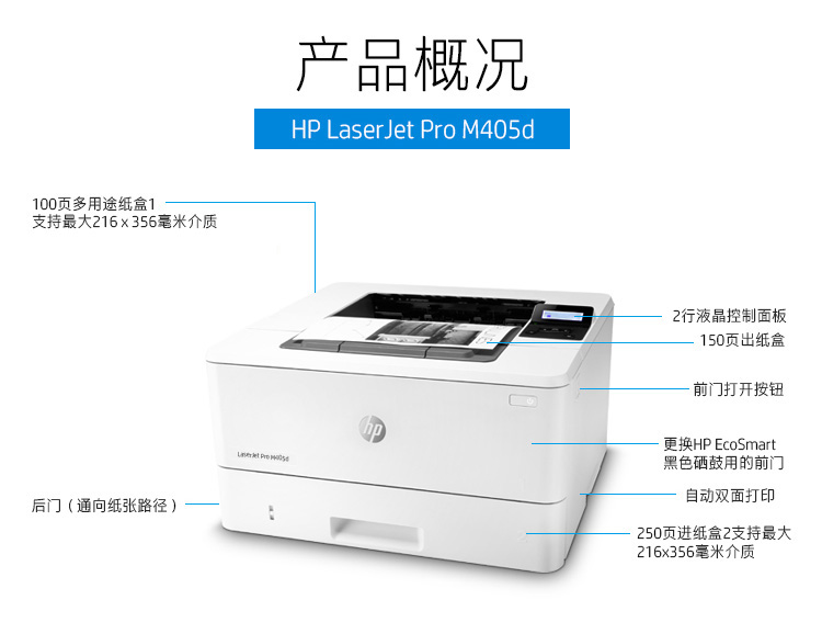 惠普(HP) M405d專業(yè)級(jí)激光打印機(jī) 多功能一體機(jī) 液晶顯示屏 自動(dòng)雙面打印 USB
