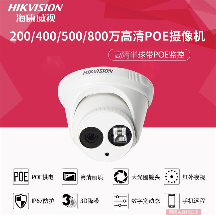 海康威視 DS-2CD3346WD-I (400萬)??低曅枪饧?jí)搭配監(jiān)控設(shè)備套裝高清半球帶POE6MM焦距