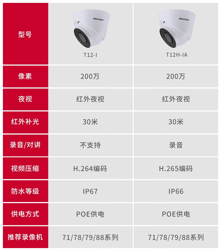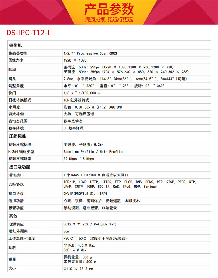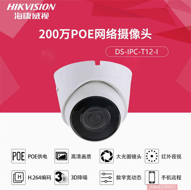 ??低?T12-I 視頻監(jiān)控設(shè)備 ??低暰W(wǎng)絡(luò)監(jiān)控攝像頭200萬高清紅外夜視半球攝像機帶POE 官方標配 2.8MM焦距